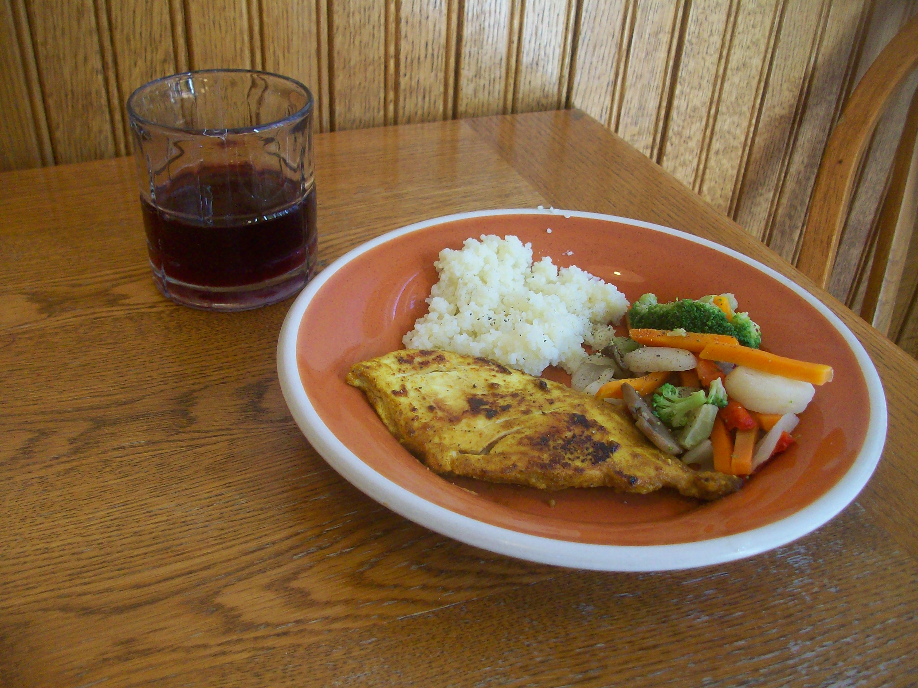 The chicken was a bit spicy. The grape juice offset it though! After dinner I polished off the rest of the kettle corn from this weekend. I needed energy for swim practice!