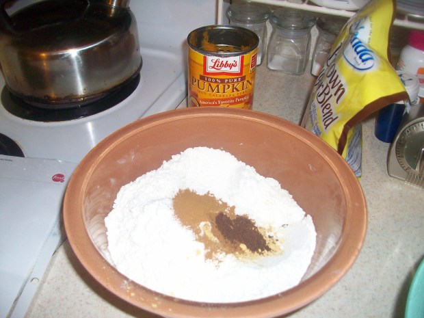 As we got home around 7:15 and I was a bit hungry so I decided to bake pumpkin muffins!