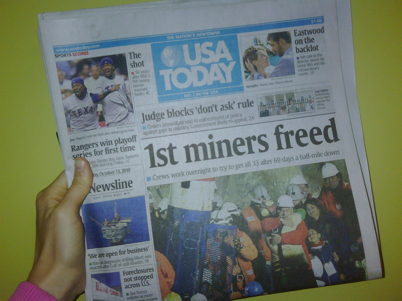 Right now, as I am typing.. 21 out of 33 miners from Chile have been freed! YES! I have been praying about this a lot… so happy! I will continue to pray until they are all safe. I will still be praying for the aftermath, too. After classes I headed home and again noticed the gorgeous scenery. Thank you God 🙂