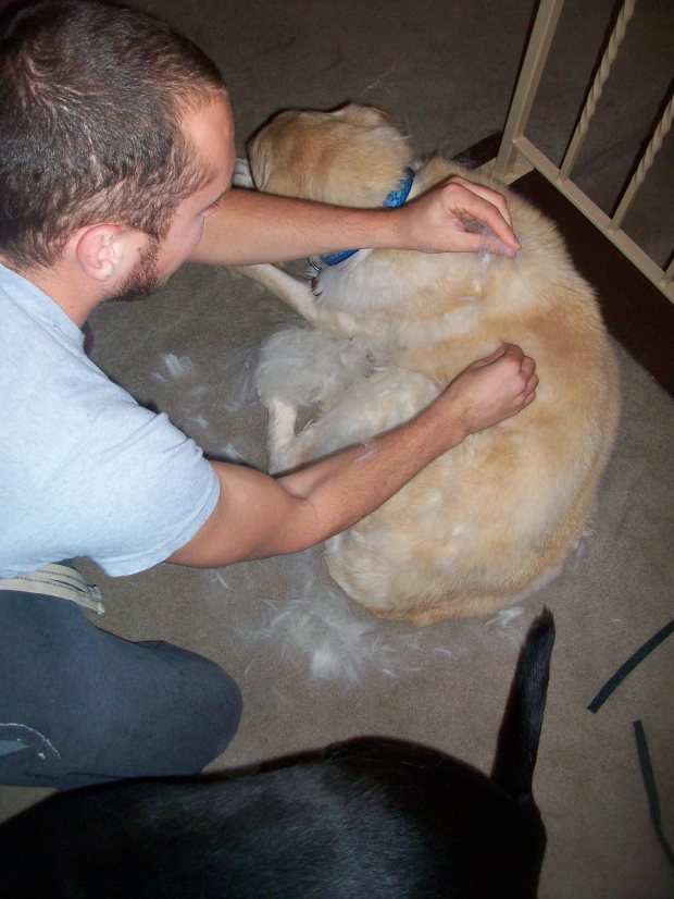 We filled a whole plastic bag. I think I could have made some gloves out of all the far, but they would be dandruff gloves, LOL.