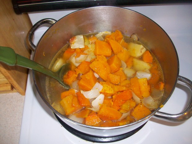 Then boil them in the broth and blend them until smooth. I made my soup chunky today!