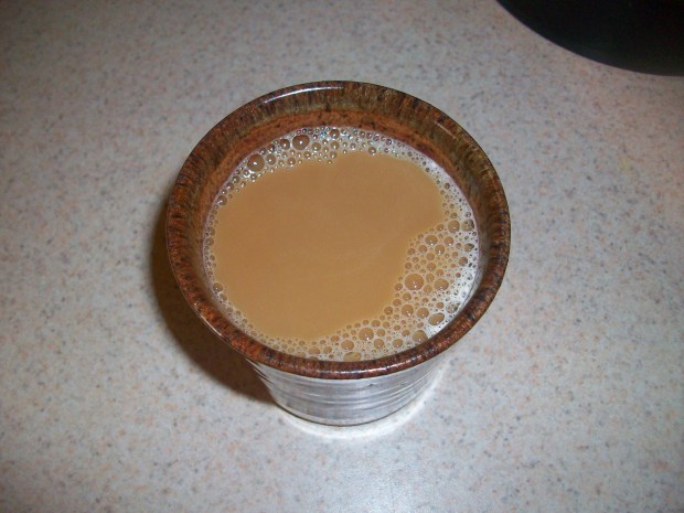 In my little clay mug is Arbuckles Pumpkin Spice Coffee 🙂 Hits the spot!