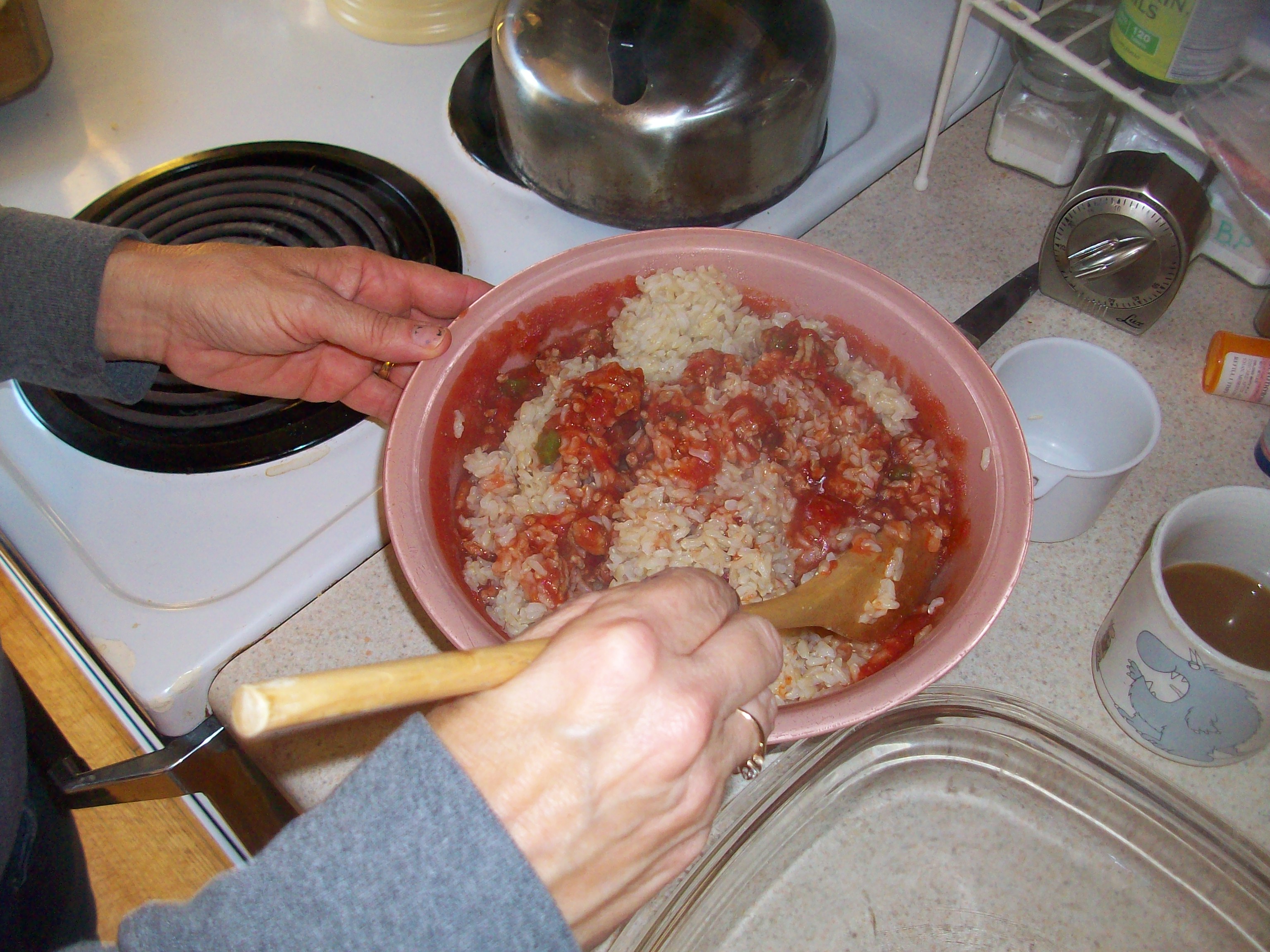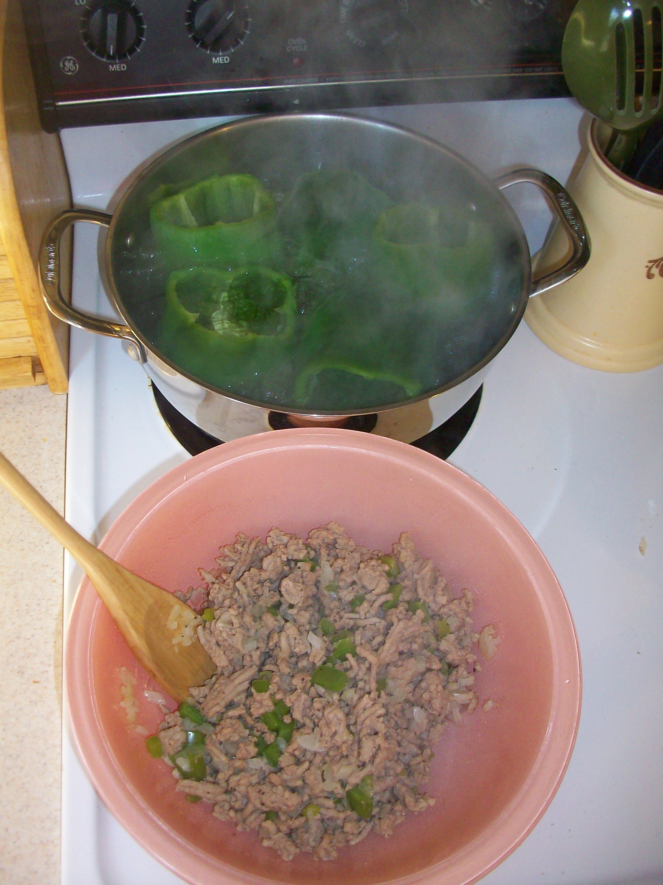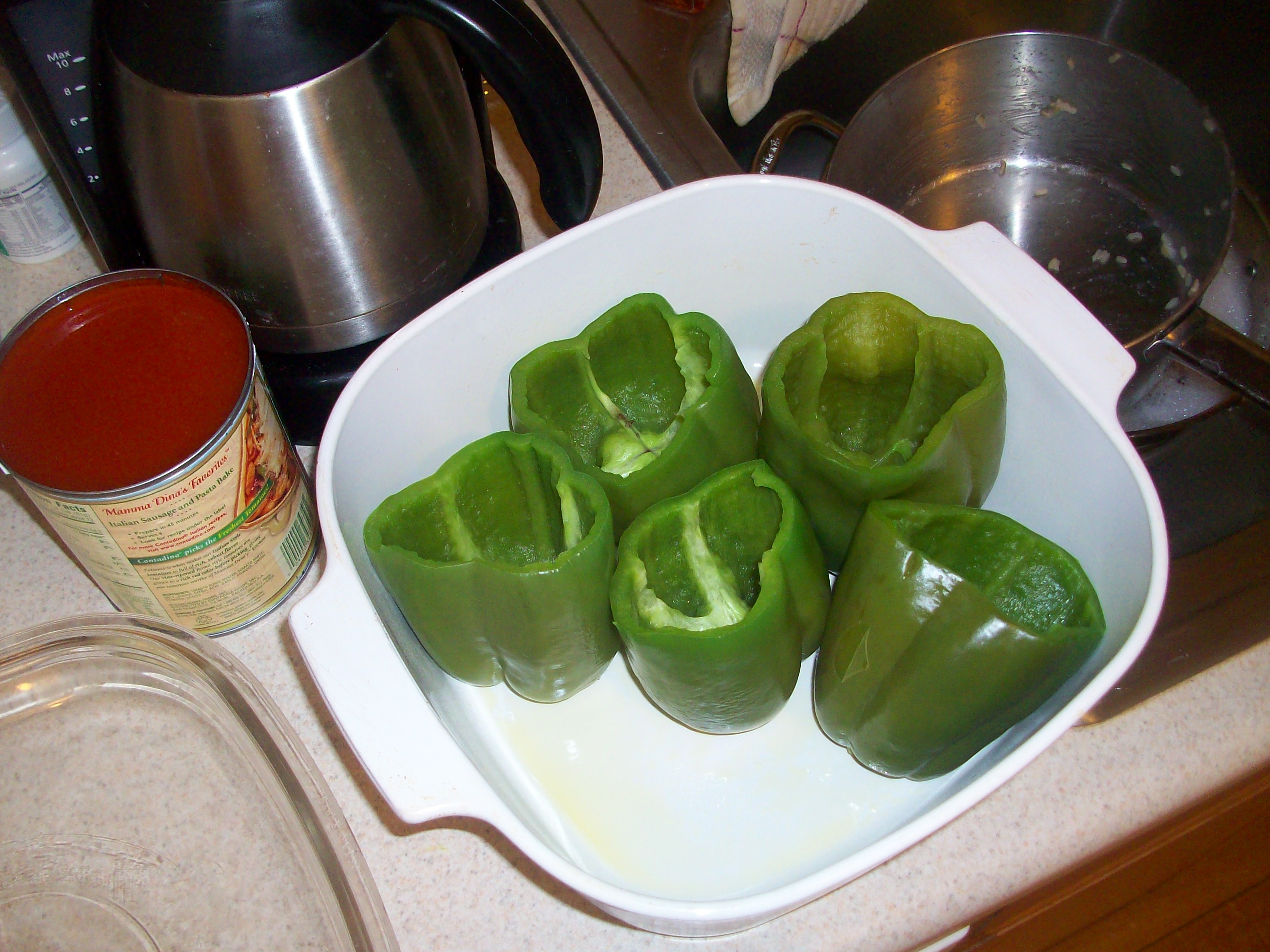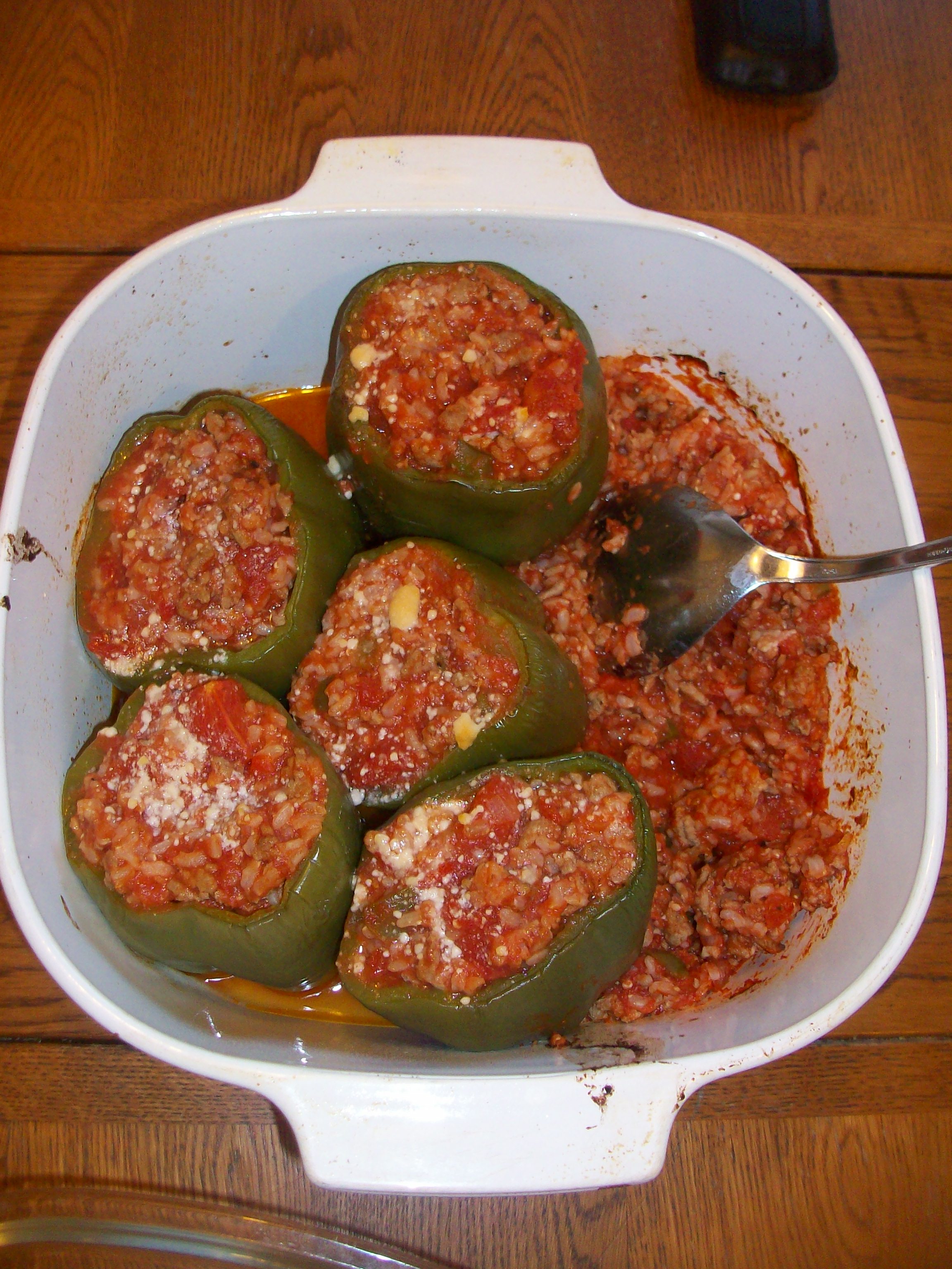 Stuffed peppers w/ Parmesan cheese! The cheese is what made it. I wish I put more on. I have a problem with cheese… I love it. So much. Too much. 🙂