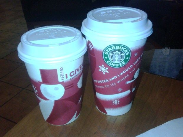 Starbucks RED cups for the holiday season! Today I heard Christmas music. This is crazy! (Oh yeah… I didn’t drink BOTH of those; I wish LOL) Jimmy got a white chocolate mocha and I had a gingerbread latte. My first gingerbread latte, but definitely not my last 😀