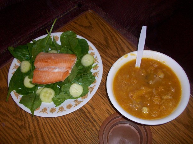 I had this lunch the other day. Salmon salad w/ butternut squash soup: