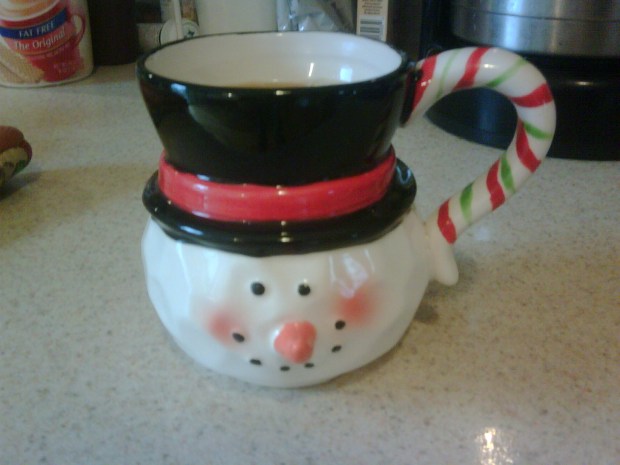 How cute is this snow man mug?! His little carrot nose even sticks out 🙂 This made my day. I am drinking pumpkin spice coffee from it right now!