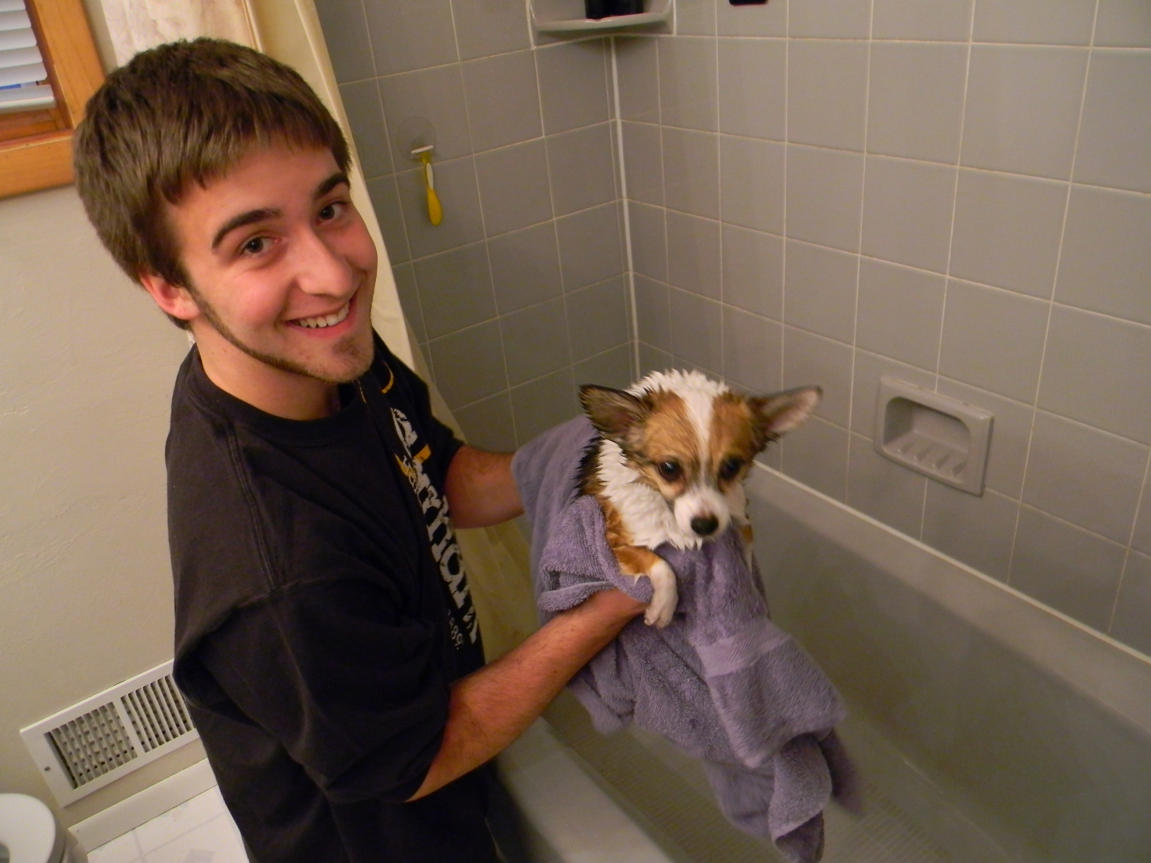 Jim & I bathed Tobi because her little under belly was all dirty!