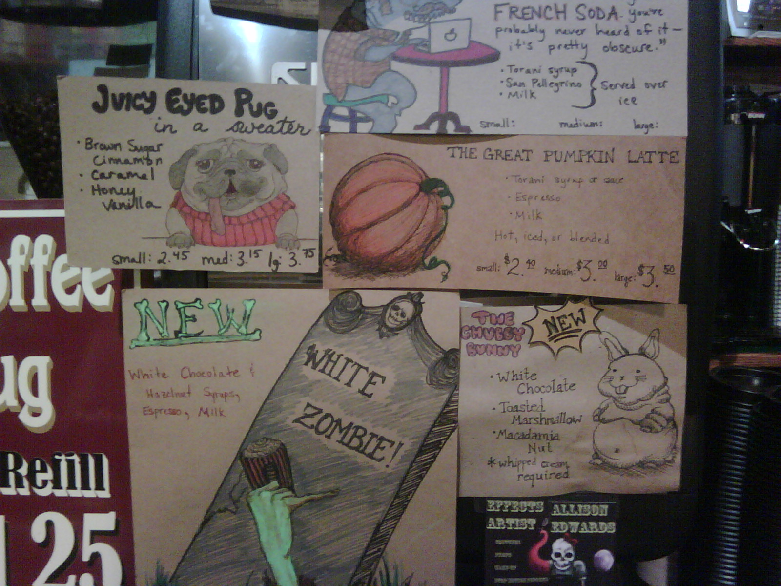 Of course they had a regular menu, but what fun is that? I ordered off of this menu above! I got the soy coconut cake latte. YUM. If you have read my blog for any amount of time you may know… I really love coconut. A lot. :]