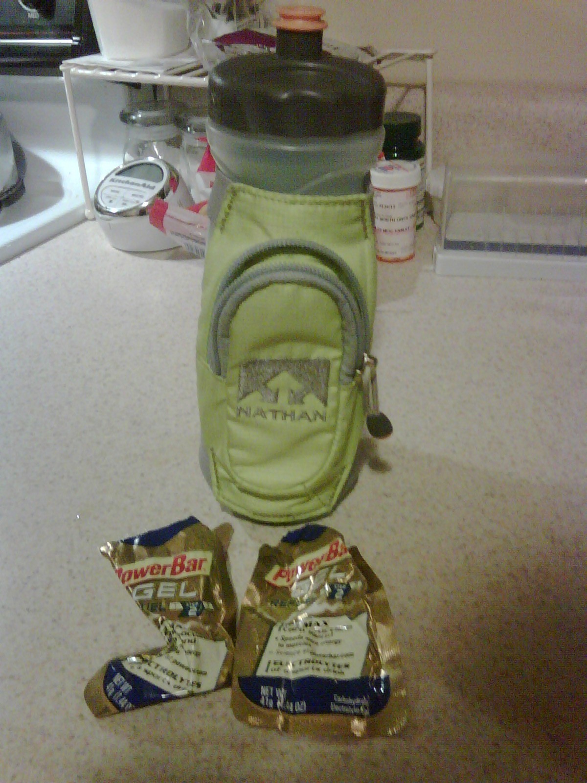I ended up drinking 2 bottles of water, a bottle of blue Gatorade, 2 energy gels, a banana, sunflower seeds, and a lemon poppy seed muffin. Nummy 🙂