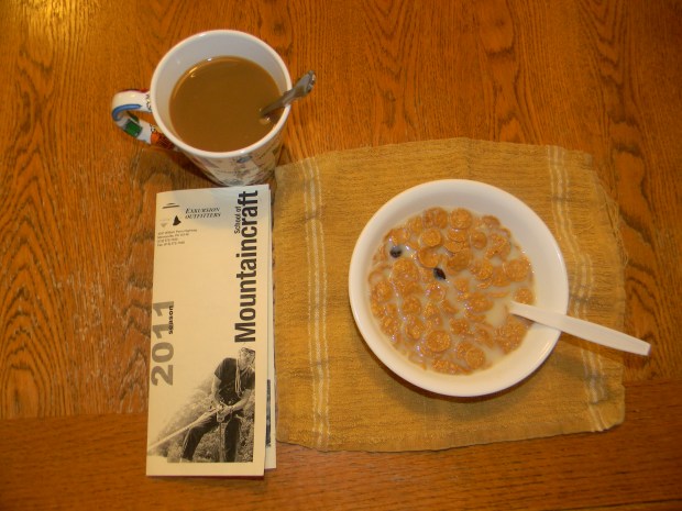 The first half of my breakfast on Saturday. (The other half is an apple w/ pb and juice) I am thinking about taking a rock climbing course!