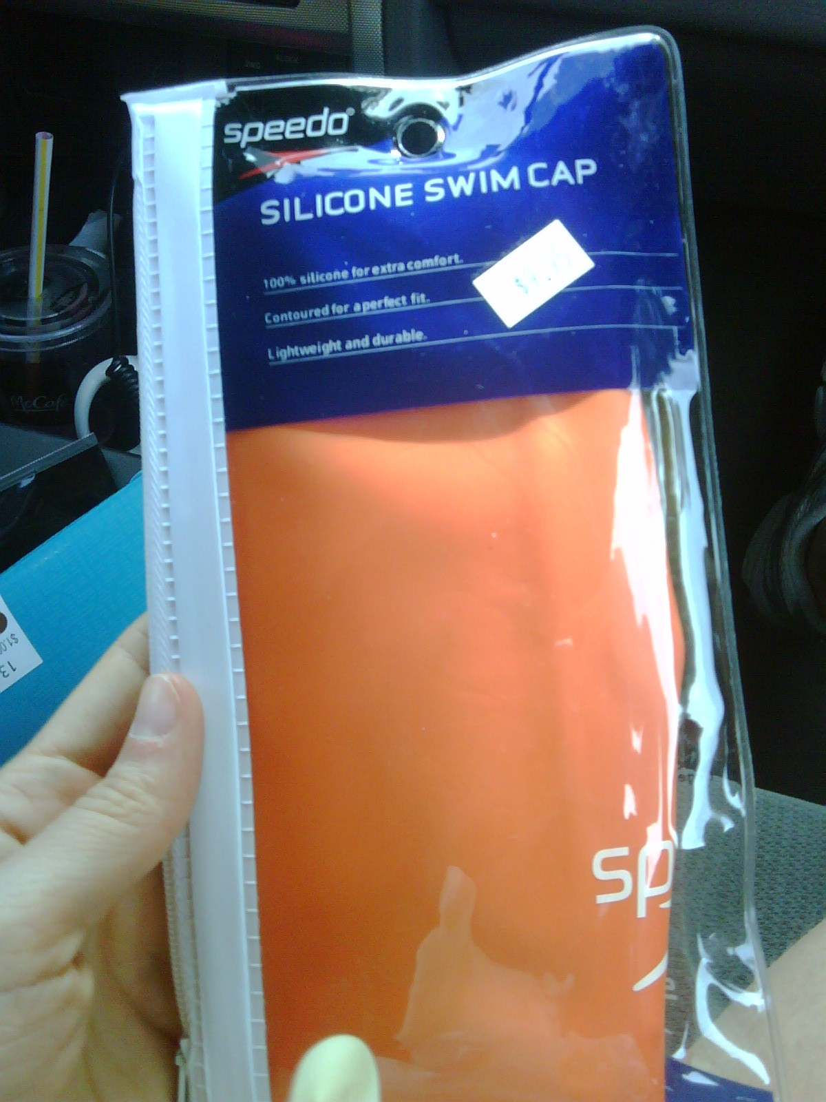 I also got a new cap. It is BRIGHT! I want to rock the “traffic cone look” while I swim ;p