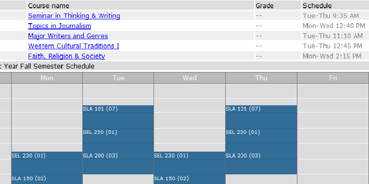 Schedule: Holla for no classes on Friday and no math/science/history classes this semester! (If you’re wondering why: i’m an English major)