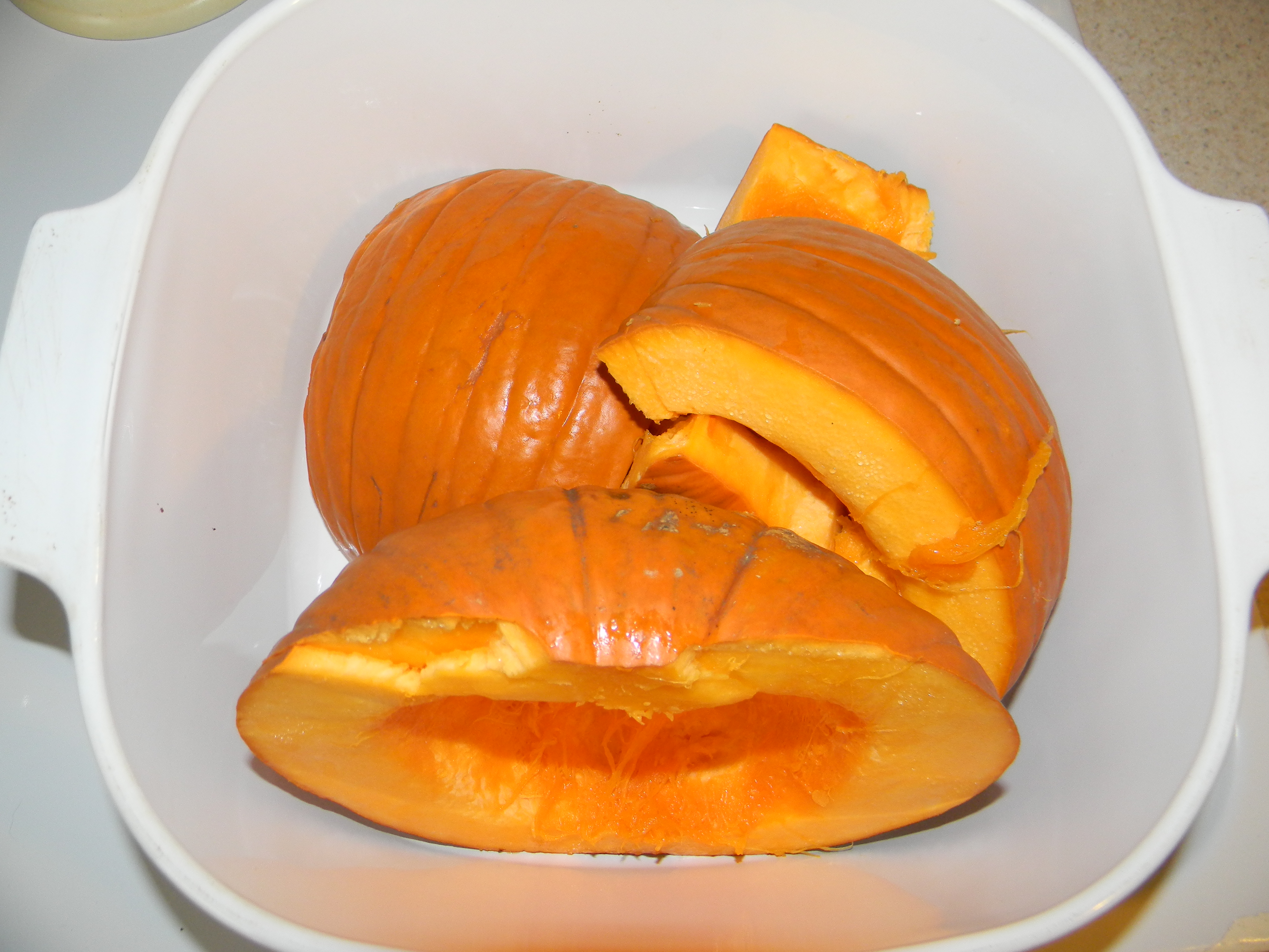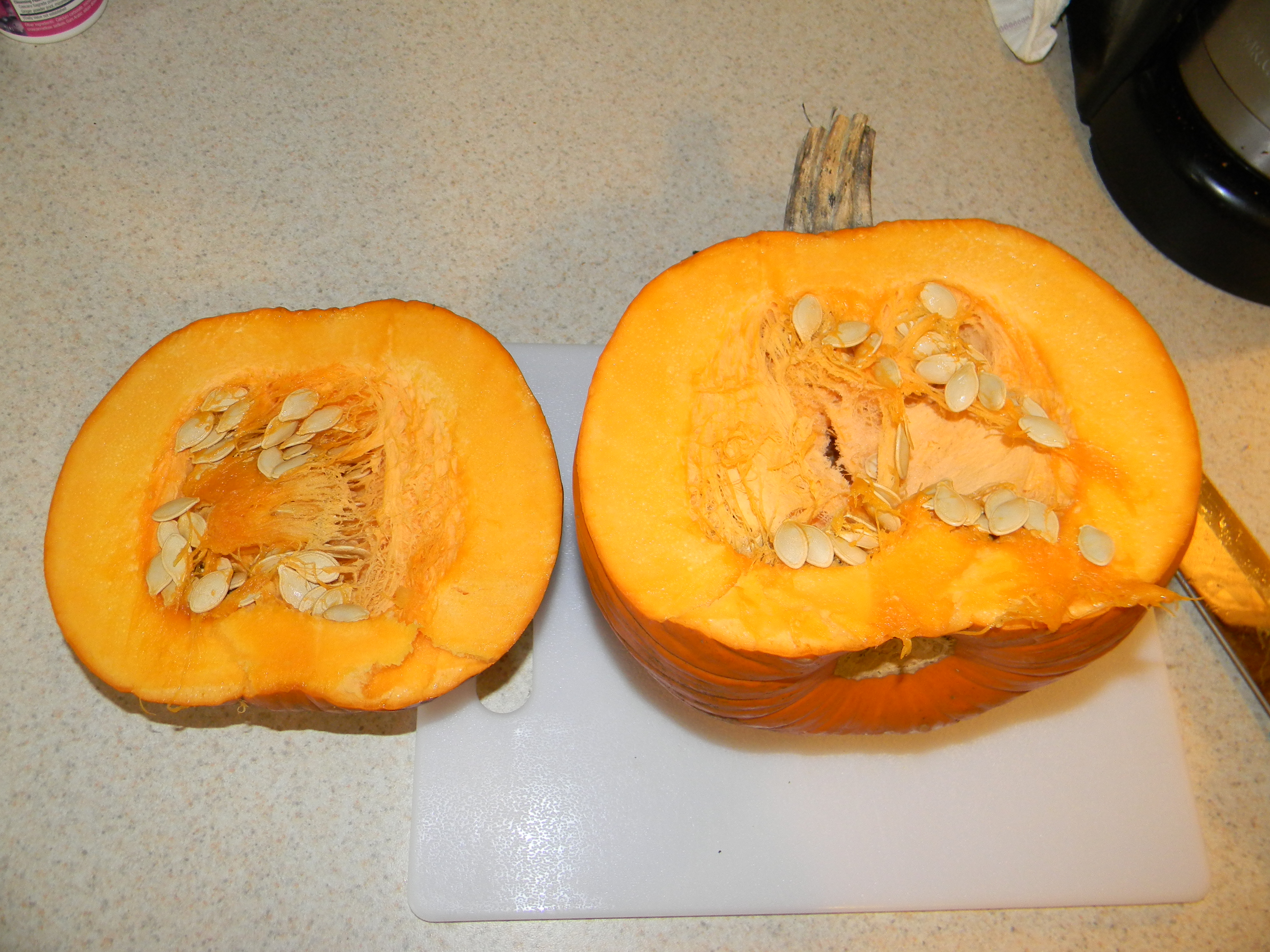 So it all started off well.Cute little cooking pumpkin. Cut openSeeds scooped outReady to microwave for 20 minutes