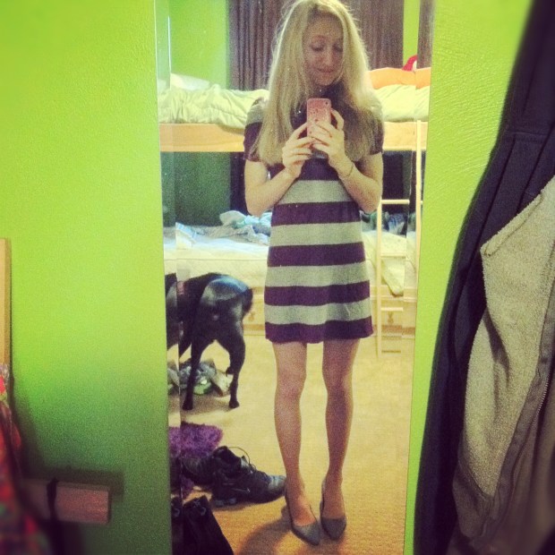 My sister was away with my parents in NY for five days and on Sunday I didn’t have anything to wear to church. So I borrowed one of Hannah’s dresses. What is funny is that she wore the dress last week at church and no one noticed that I re-wore it 😉 #winning.