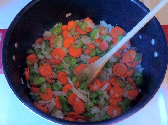 I had some basic soup-making ingredients on hand so I decided to make some soup!