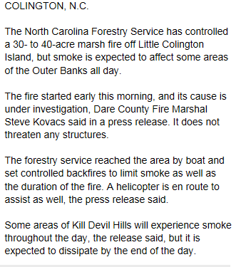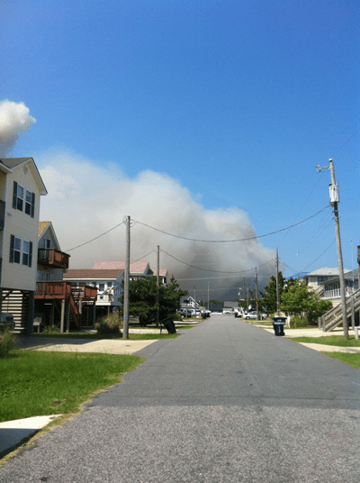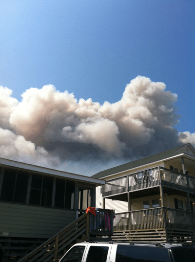 Jimmy convinced me to keep walking to the beach but I was so afraid. So many things ran through my mind… Should we evacuate? Are we going to be able to breathe? What if our house catches on fire? Is anyone hurt?When we got on the beach, we could see a thick layer of smoke over the water and could taste fire in the air. Eventually, someone told us that a nearby marsh fire was causing all the smoke and that it was contained.