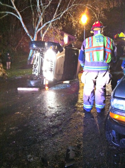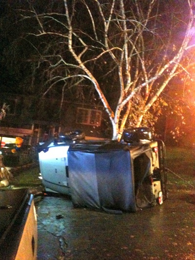 The person who crashed must have called his mom… she arrived at the scene and started screaming and swearing at me and my neighbors for “talking about her son” even though I was only standing at the scene because it was my vehicle that was hit (trust me, I would have rather been in bed!). The person in the accident also had a scuffle with the police.