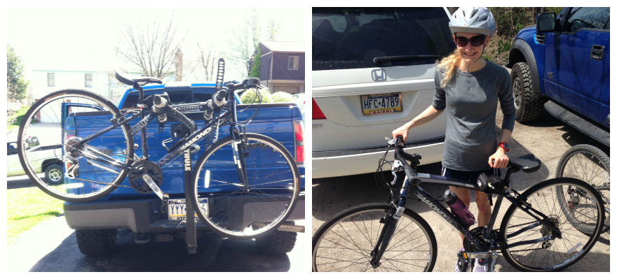 I also rode my bike this weekend. Yes, I own a bike! My parents gave me a road bike for Christmas (they rock), and I finally got the chance to ride it outside on the Montour Trail! I loved it.