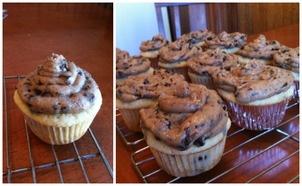 Saturday morning I woke up knowing that I had a big project to do for my news editing class. So I decided to bake cupcakes. Very logical. I made chocolate chip cupcakes with cookie dough frosting. Can’t go wrong with cookie dough!