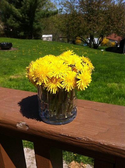 Jimmy made fun of me for collecting a bouquet of dandelions. He claims they are weeds. I claim they are pretty.