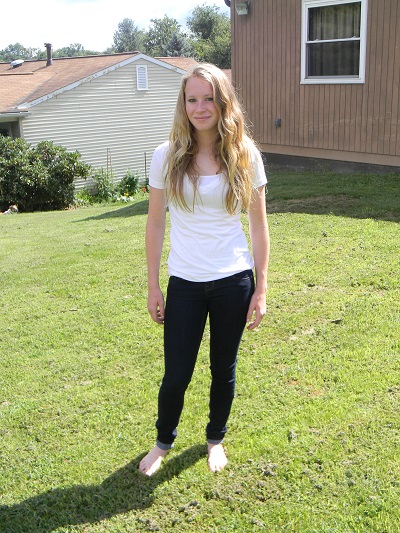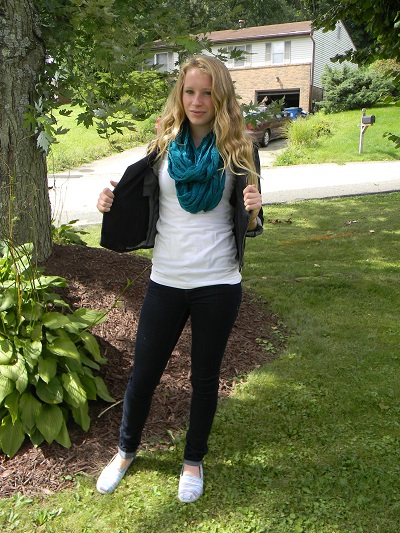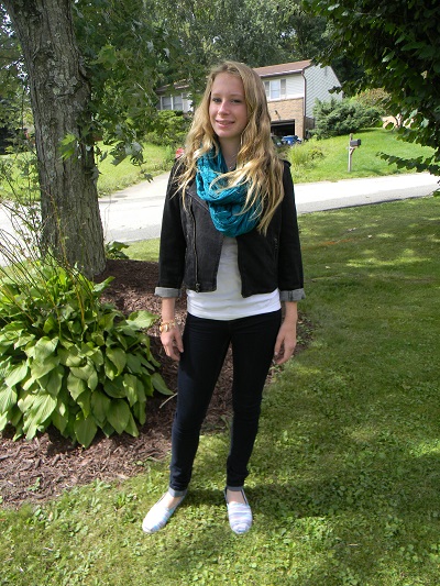 2. Okay, Hannah looks beauitful! The blue earrings really bring out her eyes, but what I love most (and think the concept for the fashion show is) is that she took a pretty basic outfit but really dressed it up! Not to mention most teenage girls have a scarf and some sort of jacket in their closet 🙂