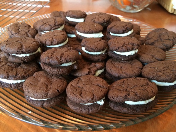I made homemade Oreo cookies for a church fellowship that Jimmy and I hosted on Sunday night. It was our first time hosting a church activity, and it was so much fun. We asked everyone in the church to bring their favorite dessert, and after the evening service everyone gathered to enjoy cookies, cakes, pie, coffee, and each other’s company.
