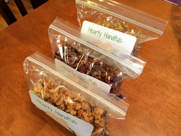 A custom order of Hearty Handfuls granola! Peanut butter, almond, and chocolate peanut butter flavors. Yum. I always taste test every batch to ensure maximum deliciousness ;-).