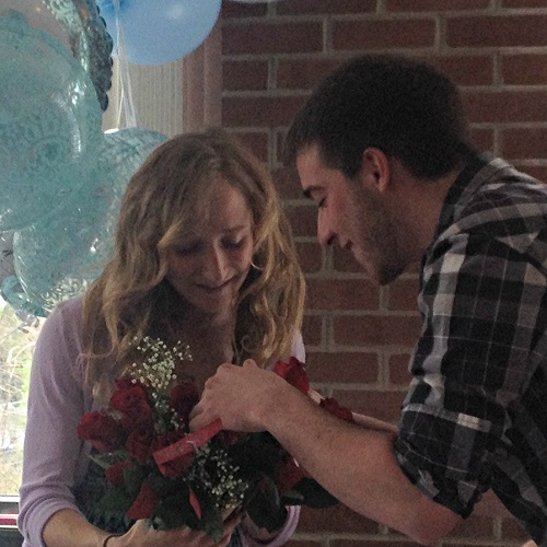 Oh my goodness!!! I have tears. That is sooooo sweet that they planned for him to surprise you with flowers. What a perfect day!