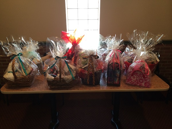 A table full of gift baskets that my mom, future mother-in-law, aunt, sister, and sister-in-law made for guests to win. My favorite was the Dunkin’ Donuts-themed gift basket!