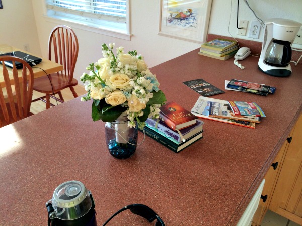 I brought my bouquet with us (one of the perks of driving to our honeymoon), and set it up on our counter. Every time I walked past it I sighed and smiled. Such happy memories.