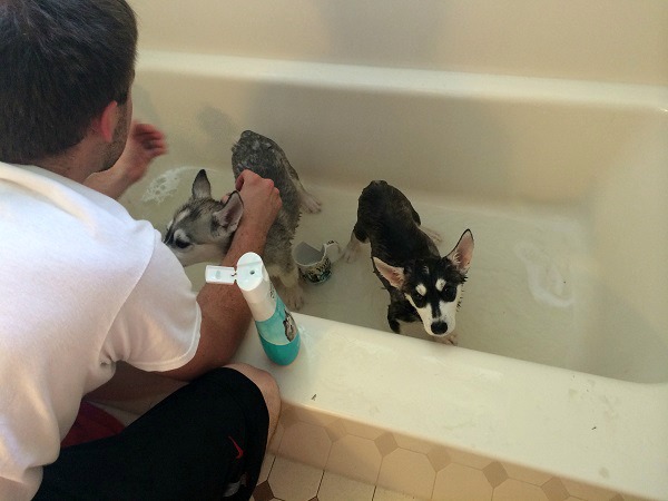 Aww, your puppies getting a bath—too cute! They seem pretty obedient looking at the picture 🙂