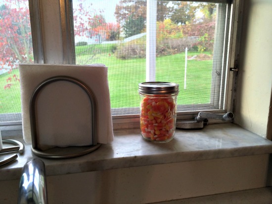 The candy corn “decoration” is going fast because we keep snacking on it 🙂