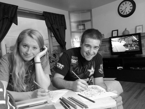 Hannie and Jimmy coloring together. My dad was in the background watching a car show snoozing.