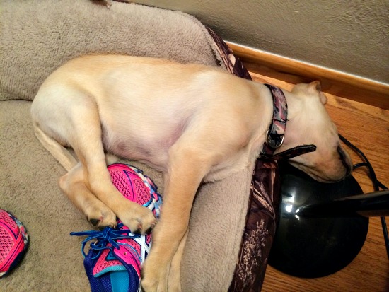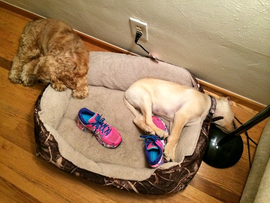 We took Lola, Brandy, and Reggie on a walk and Reggie crashed in Lola’s bed when we arrived home. He’s so cute and such a mellow puppy! He has definitely blended in well with my family.