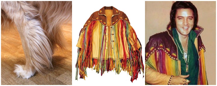 I don’t know if anyone reading this has a golden retriever, but I have noticed that every golden retriever I’ve met has what I like to call “Elvis arms.” By Elvis arms, I mean that their arms have fur that looks like leather fringe jackets that Elvis used to wear.