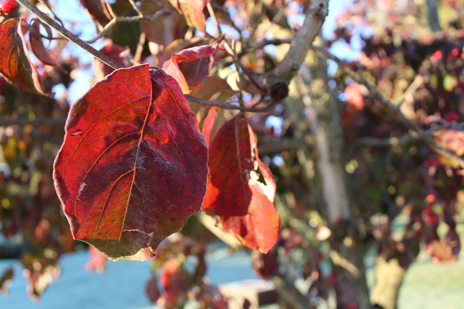 We had our first frost last week. I had to scrape ice off my car before I could drive to work. Brr! I’m loving the fall colours though. 🙂