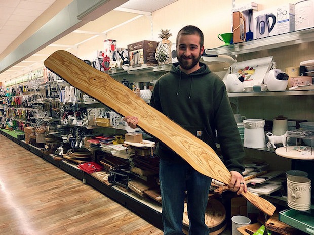 We wandered around a few stores, including HomeGoods, where Jimmy found this… platter? Decoration? Whatever it was, he was fascinated by it and wanted me to take a picture of him holding it.