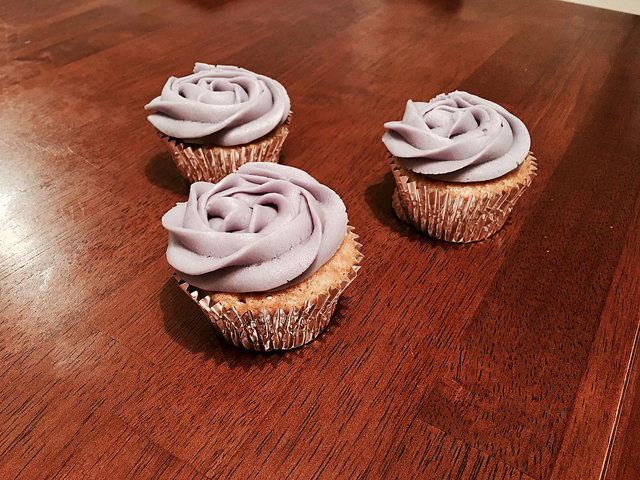 I practiced rosette cupcakes filled with whipped cream and topped with purple frosting and they came out well. I think they just need something more. Maybe some type of sparkly topping?