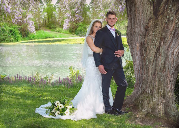 Wedding picture by lake in park