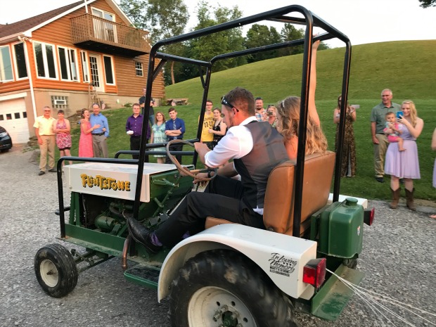 At the end of the evening, Hannah changed into a dress that wasn’t covered in cake and was easier to get around in and they drove off in a tractor! They left from their reception and went straight to the Pittsburgh International Airport to fly to their honeymoon destination. They’re in Punta Cana, in the Dominican Republic!
