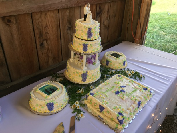 Hannah and Josh danced to Forever and Ever, Amen by Randy Travis. Their dance was so cute! They practiced quite a bit before the wedding, and they did a wonderful job dancing together. They also cut their cake and smashed it in each others faces, which was pretty hilarious. Hannah was absolutely covered in cake after that 🙂