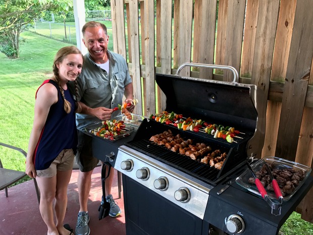 On Saturday evening, we had our families over to celebrate Father’s Day. We grilled shish kebabs, lit sparklers, and celebrated our dads. Their gift? Us kids are taking them go karting soon!
