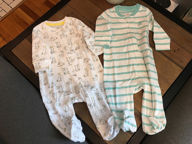 P sent me the sweetest package of baby clothes last week. Thank you so, so much, P! Jimmy and I absolutely love the little sleepers and were ohhing and ahhing over how cute they are.