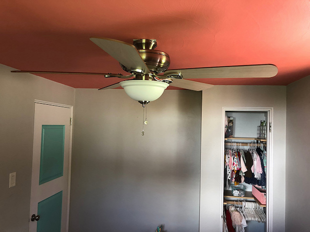 Jimmy did so, so much work in here! He installed new flooring, painted the walls and ceiling, installed new baseboards, put in a new door and painted it, installed a ceiling fan, put together all the furniture, and painted and designed the closet space. He continually impresses me with his skills, handiness, and creativity.