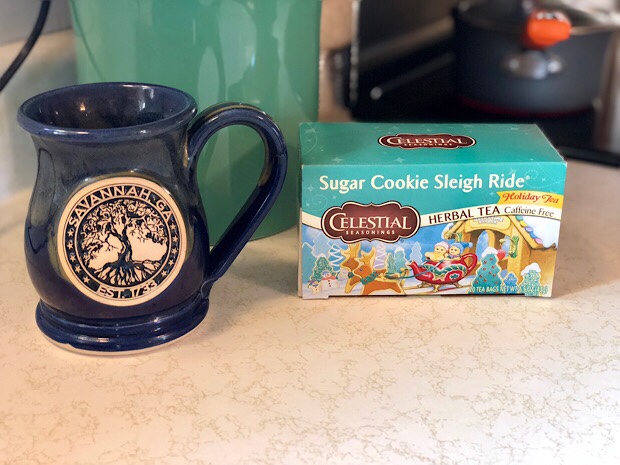 Current drink Sugar cookie sleigh ride tea. Can’t get enough of this lately! Celestial Seasonings really knows how to make a good seasonal tea.
