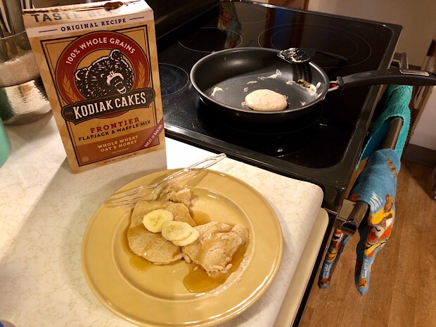Current food Pancakes. I was told Kodiak Cakes are delicious, so I picked up a box of the oat and honey mix and they did not disappoint! And yes, I ate them while standing at the counter 🙂