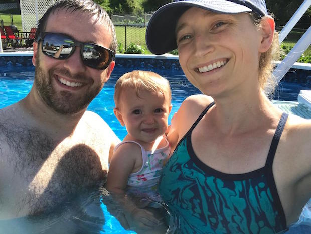 That evening, Jimmy and I took Sadie swimming in our neighbor’s pool and it was so. much. fun. Afterwards, Sadie went down for a late nap and Jimmy and I ate dinner outside on our bistro table… alone! What a treat.