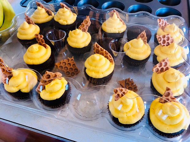 Honey themed cupcakesHoney bee cupcakes with honeycombCandy honeycomb