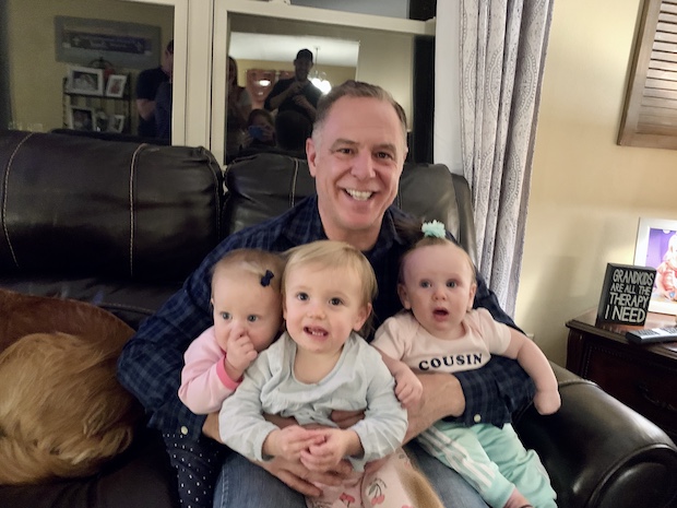 Grandpa with three babies