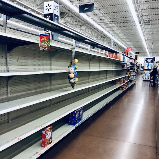 It was crazy to go to the grocery store and see the shelves bare and completely out of stock of things I usually take for granted like toilet paper, canned goods, bread, and cereal.